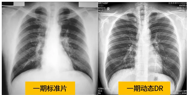 動態(tài)DR技術(shù)與普通DR單截面診斷的不同就是在操作過程中,可以隨時切換成透視模式,透視/攝片模式實時切換,對陰影進行多角度動態(tài)的鑒別。實時點片、實時回放、連續(xù)點片等多功能大大的增加了初診的準(zhǔn)確率。在小陰影的形態(tài)和性質(zhì),特別是不規(guī)則小陰影的判斷方面提升,從而達到提高胸片整體判斷準(zhǔn)確性。