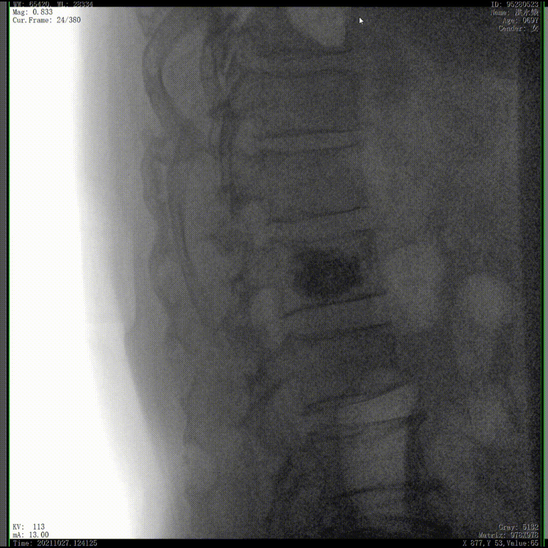 我們完成了椎體成形術(shù)以后,在二維的正側(cè)位影像上還不能看清骨水泥的滲漏情況,通過三維影像就可以360°的觀察骨水泥在椎體里到底是怎么彌散的。如果當(dāng)時(shí)我們判斷出來質(zhì)量不好,可能還需要進(jìn)行翻修,這是在二維影像上不能看到的。