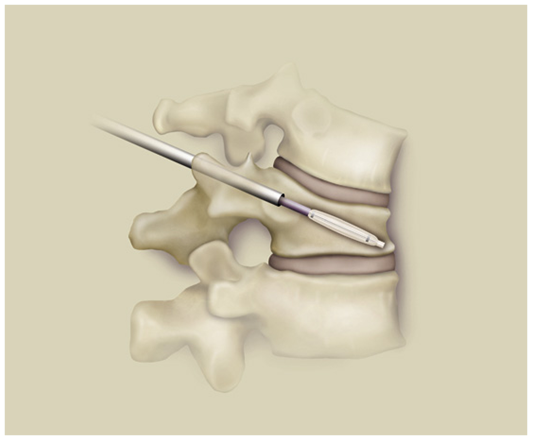 向空腔中注入骨水泥。椎體高度恢復,強度恢復。