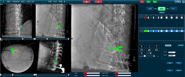 使用普愛醫(yī)療三維C形臂對患者進行胸椎影像掃描及三維重建,圖像被同步傳輸?shù)狡諓坩t(yī)療骨科機器人導(dǎo)航系統(tǒng)。